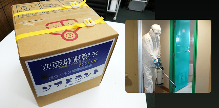 除菌剤は厚生労働省から認可をうけた次亜塩素酸水を使用します。